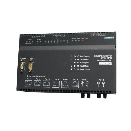 SIMATIC NET, OSM TP62 OPTICAL SWITCH MODULE W. 2 FOC CABLE PORTS 100MBIT/S, 6 RJ45 PORTS, 10/100MBIT/S AND 8 DIGITAL INPUTS, REDUN. 24V DC SUPPLY, SIGNALLING CONTACT, INTEGRATED REDUNDANCY MANAGER W. NETWORK MANAGEMENT
